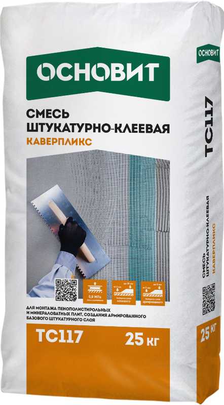 Штукатурно-клеевая смесь ОСНОВИТ КАВЕРПЛИКС ТС117 предназначена для монтажа пенополистирольных и минераловатных плит, создания армированного базового штукатурного слоя. Рекомендуется для создания “дышащих” систем утепления фасадов как новых, так и старых зданий.